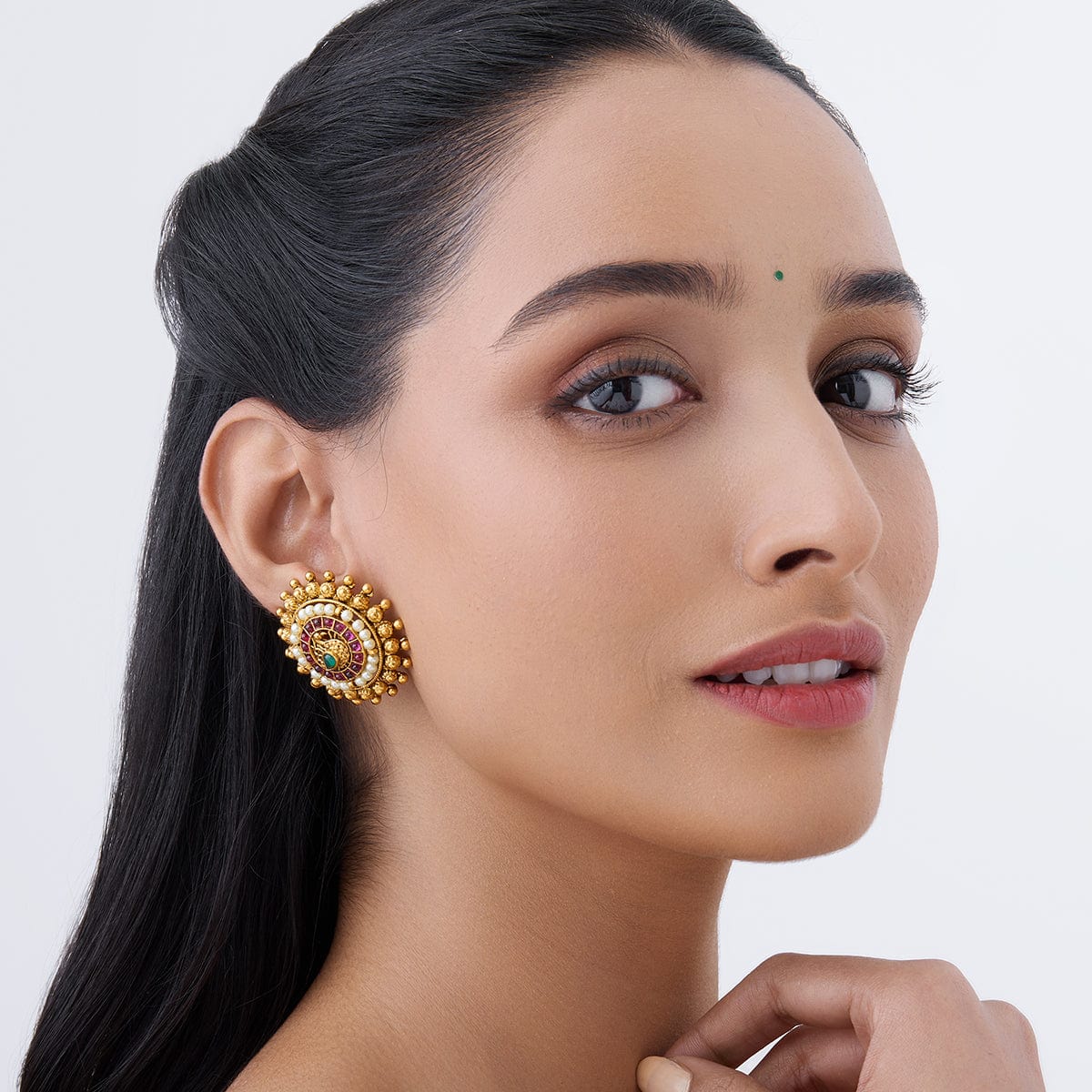 Kushal's Fashion Jewellery Peacock Motif Antique Earring