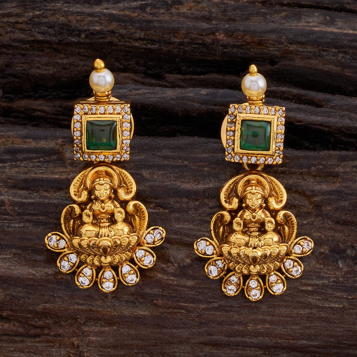 Capture the attention with our Antique Earring, a true treasure for jewellery enthusiasts. Made from a high-quality copper alloy base metal, this earring displays an intricate design of the goddess Laxmi sitting gracefully on a lotus, embellished with stunning synthetic stones. This accessory is an affordable luxury that will elevate your style, and everyone will appreciate your jewellery collection.