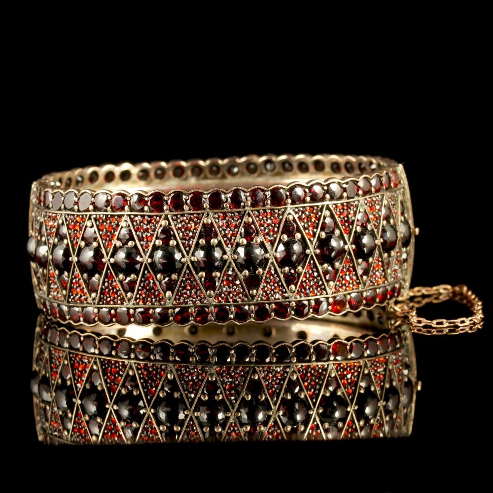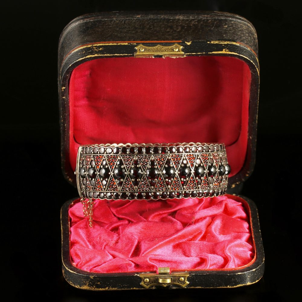 This has to be one of the most stunning boxed Bohemian Garnet bangles we have ever exhibited for sale.