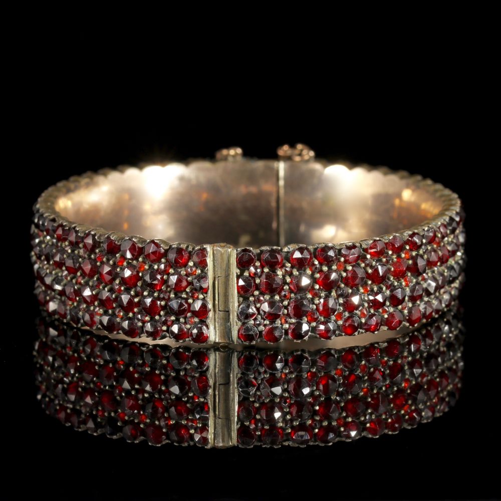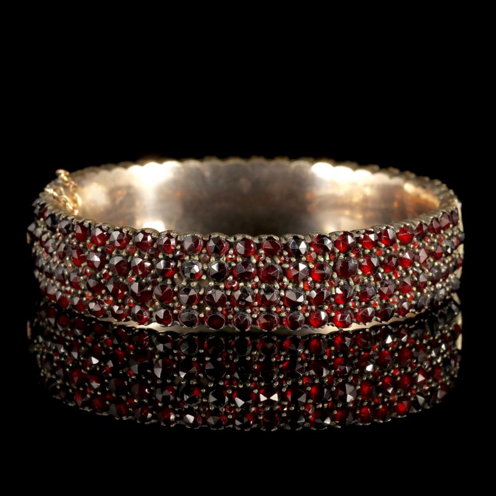 The beautiful bangle is encrusted with deep red Bohemian Garnet¡¯s sparkling around the entire circumference of the piece.