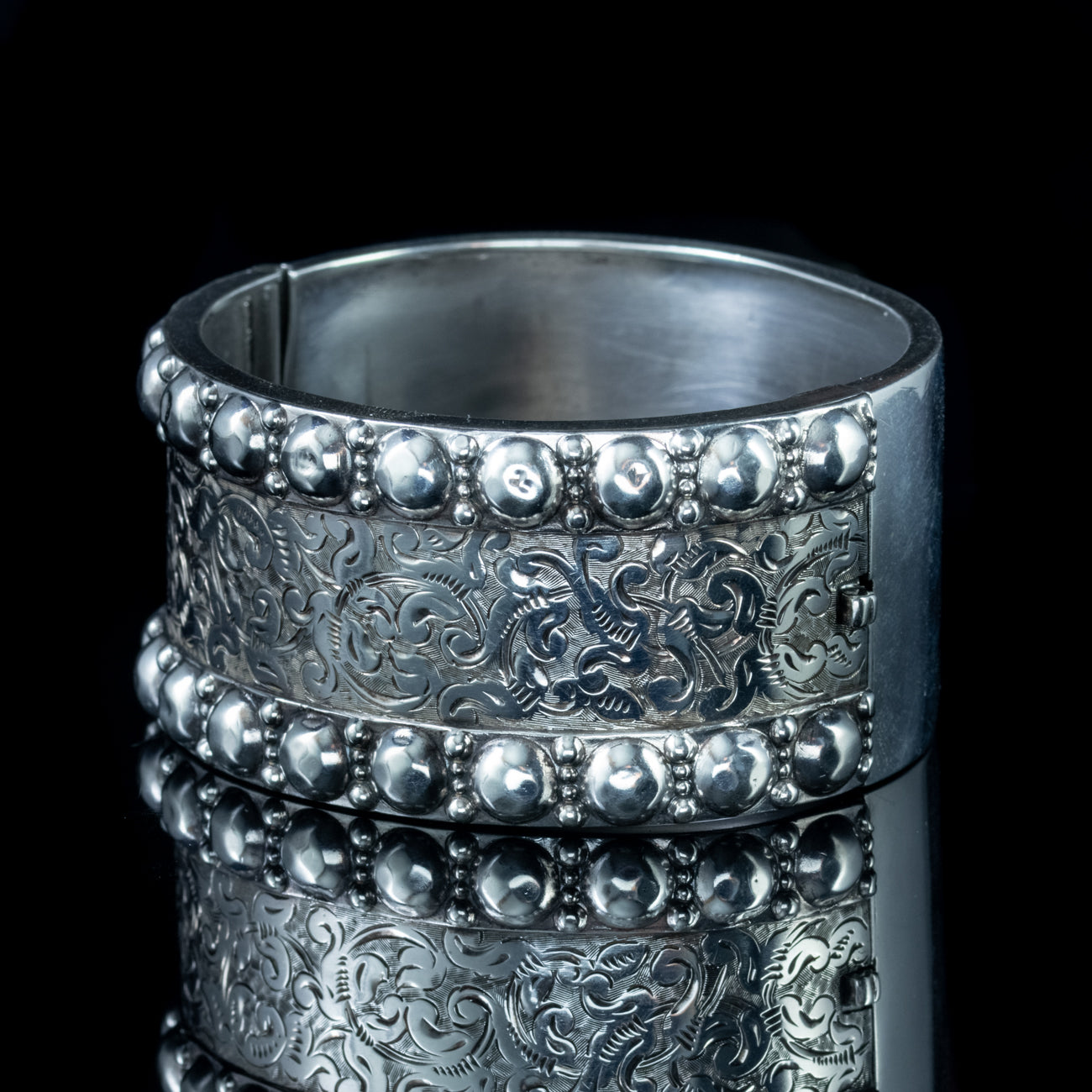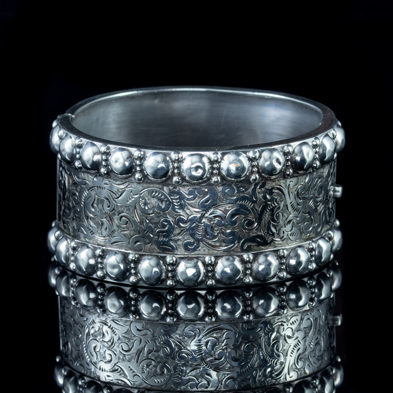 This beautiful genuine antique Victorian cuff bangle has been expertly crafted in Sterling Silver.