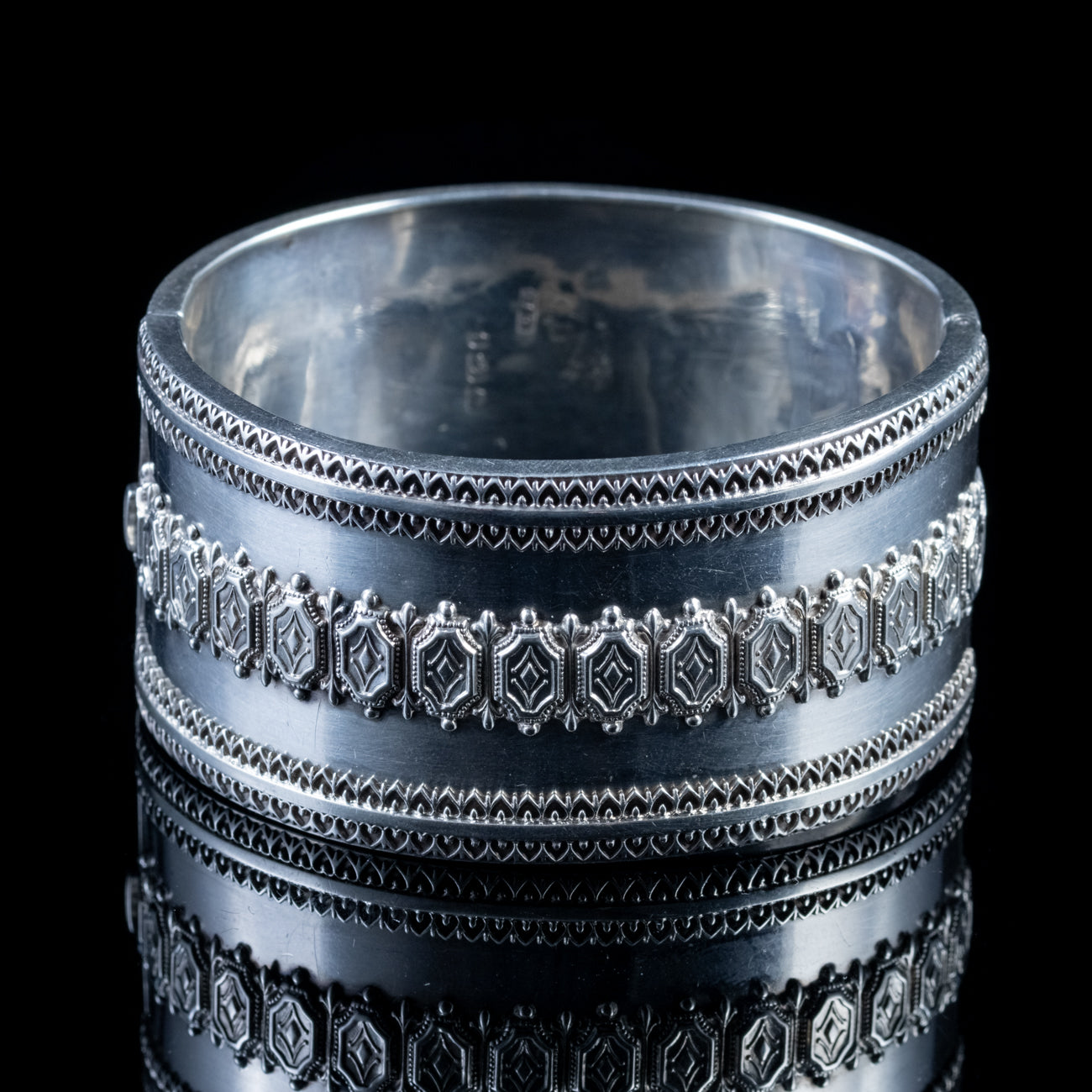 Antique Victorian Cuff Bangle Sterling Silver Dated 1893