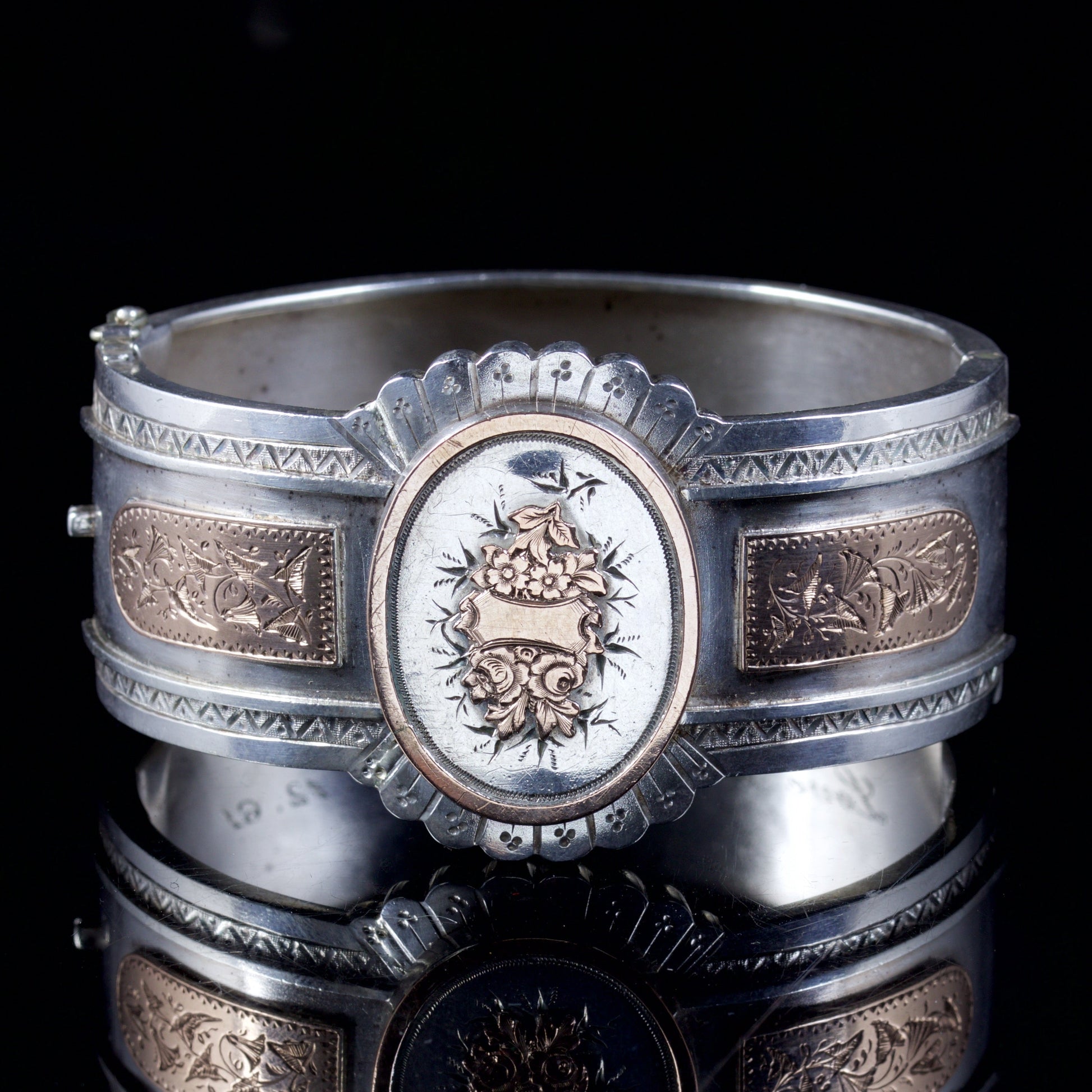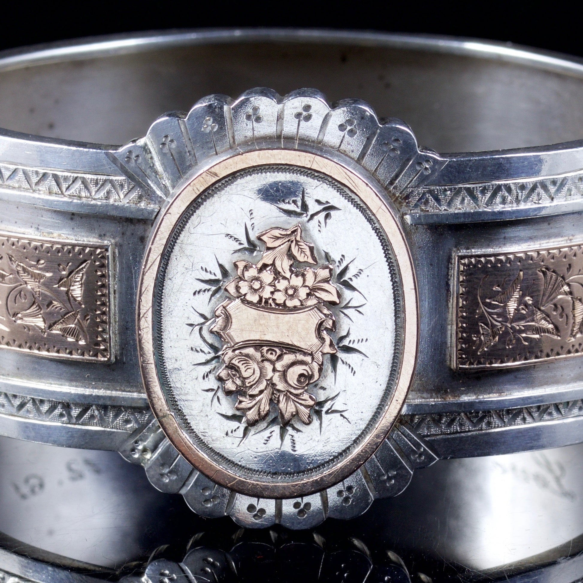 This spectacular Victorian Silver cuff bangle is, Circa 1880.